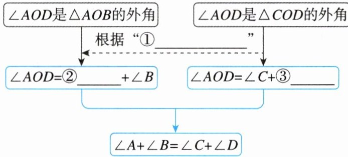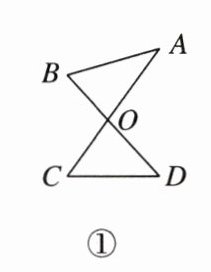 1. (思维可视化) (1) 如图①, AC, BD 相交于点 O, 如何证明 $ \angle A + \angle B = \angle C + \angle D $?