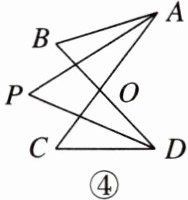 (4) 如图④, AC, BD 相交于点 O, $ \angle BAC $, $ \angle BDC $ 的平分线交于点 P, $ \angle B = \alpha $, $ \angle C = \beta $, 求 $ \angle P $ 的度数(用含 $ \alpha $, $ \beta $ 的式子表示).