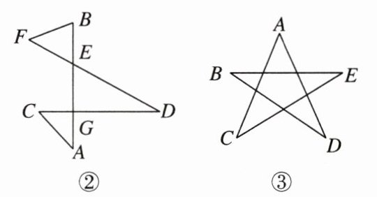 $ ^ { \circ } $.(3) 如图③, $ \angle A + \angle B + \angle C + \angle D + \angle E = $