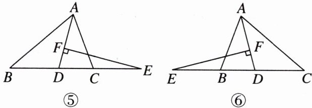 (6)如图⑤,图⑥,在$\triangle ABC$中,$\angle ABC = \alpha$,$\angle ACB = \beta$,$AD是\angle BAC$的平分线,在直线$AD上任取点F$,过点$F作EF \perp AD$,与直线$BC交于点E$,请直接写出$\angle DEF与\alpha$,$\beta$之间的数量关系: