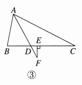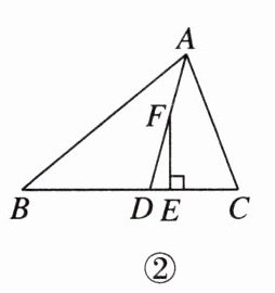 (3)如图②,在$\triangle ABC$中,$AD平分\angle BAC$,在线段$AD上任取点F$,作$FE \perp BC$,垂足为点$E$,当$\angle B = 40^{\circ}$,$\angle C = 70^{\circ}$时,$\angle DFE$的度数为