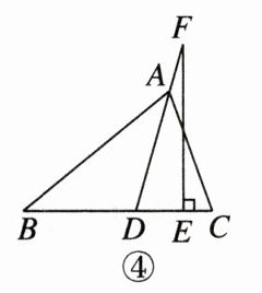 $^{\circ}$。(4)如图③,在$\triangle ABC$中,$\angle B > \angle C$,$AD平分\angle BAC$,在$AD的延长线上任取点F$,作$FE \perp BC于点E$,设$\angle B = x$,$\angle C = y$,则$\angle DFE$的大小为