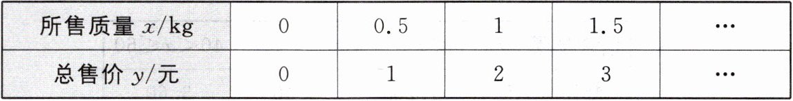 4. 一种大豆的总售价$ y $(元)与所售质量$ x(kg) $之间的关系如下表所示:[教材P28例3变式2]