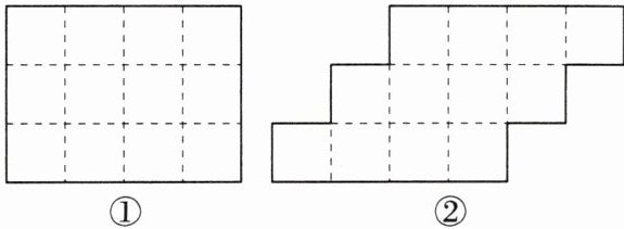 图②:在第二列的中间处竖着切一刀,将图形划分为两个全等图形(答案不唯一)。