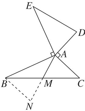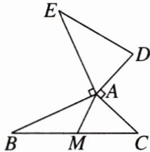 2.如图,$AB = AE$,$AB\perp AE$,$AD = AC$,$AD\perp AC$,$M为BC$的中点. 求证:$DE = 2AM$.