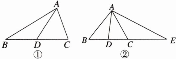 .(3)[拓展提升]如图②,$\angle BAC= \angle BCA$,$AD为\triangle ABC中BC$边上的中线,延长$BC至点E$,使$CE = AB$,连接$AE$.
