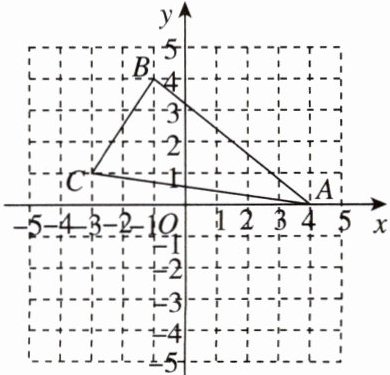 2. 如图,平面直角坐标系中,点 $ A(4,0) $,$ B(-1,4) $,$ C(-3,1) $,则三角形 $ ABC $ 的面积为
