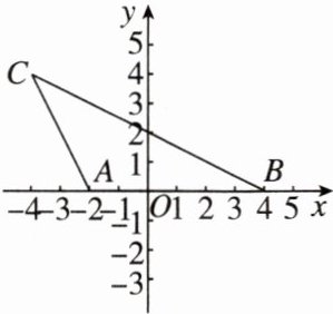 解:因为C点的坐标为(-4,4),所以三角形ABC的AB边上的高为4.由题意可知AB=6,所以$S_{三角形ABC}=\frac{1}{2}×6×4=12$.