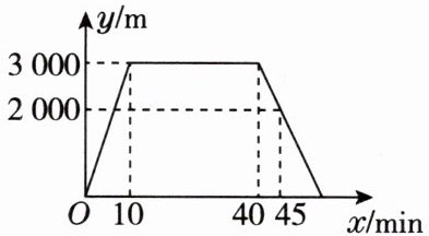 3. 小敏上午 8 时从家里出发,骑车去一家超市购物,然后从这家超市返回家中,小敏离家的距离 $ y $(m)和所经过的时间 $ x $(min)之间的函数图象如图所示. 请根据图象回答下列问题:[教材 P31 思考 2 变式]