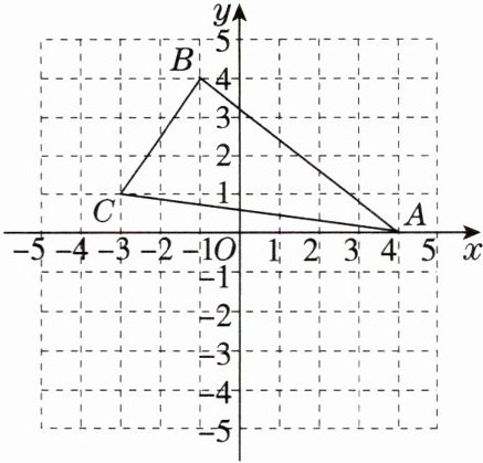 8. [2025·芜湖月考]如图,在平面直角坐标系中,$\triangle ABC各顶点的坐标分别为A(4,0)$,$B(-1,4)$,$C(-3,1)$。