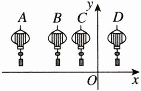 9. 创新题·新考法如图,把四盏相同的灯笼放置在平面直角坐标系中,坐标分别是$A(-3.5,b)$,$B(-2,b)$,$C(-1,b)$,$D(1,b)$,将其中一盏灯笼向右平移$m$个单位长度,使得$y$轴两侧的灯笼对称,则$m$的值可以是(