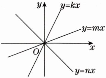 4. 如图,正比例函数$y = kx$,$y = mx$,$y = nx$在同一平面直角坐标系中的图象如图所示,则比例系数$k$,$m$,$n$的大小关系是