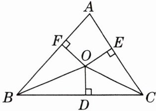 9. 如图,O是△ABC内一点,且点O到三边AB,BC,CA的距离OF,OD,OE相等,若∠BAC= 70°,则∠BOC=