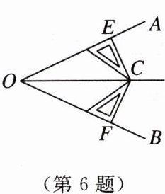 6. [2025年1月安庆期末]如图,将两个完全相同的直角三角板按如图所示方式放置,使得顶点C重合,∠OEC= ∠OFC= 90°,若∠AOC= 25°,则∠OCF的度数是