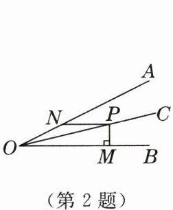 2. [2025年1月淮北期末]如图,OC平分∠AOB,点P是射线OC上一点,PM⊥OB于点M,点N是射线OA上的一个动点,连接PN.若PM= 6,则PN的长度不可能是(