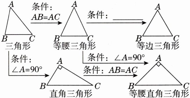 小曹同学复习时将几种三角形的关系整理如下,请帮他在横线上填上一个适当的条件.