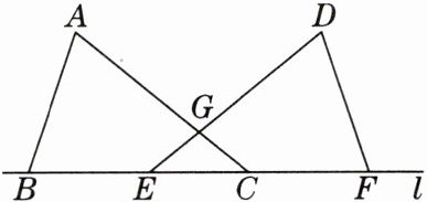 4. 如图,$B$,$E$,$C$,$F是直线l$上的四点,$AC$,$DE相交于点G$,$AB= DF$,$AC= DE$,$BE= CF$.求证:$\triangle GEC$是等腰三角形.