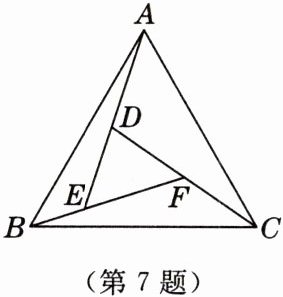 7. 如图,$\triangle ABC$是等边三角形,点$D$,$E$,$F在\triangle ABC$的内部,点$D在AE$上,点$E在BF$上,点$F在CD$上,且$\angle BAE:\angle CBF:\angle ACD= 1:2:3$,则$\triangle DEF$的形状是(