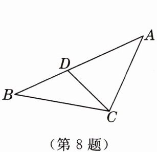 8. 如图,在$\triangle ABC$中,点$D在边AB$上,且$\angle ADC= \angle ACD= 2\angle B$,若$AB= 27$,$\triangle ADC的周长为43$,则$CD= $