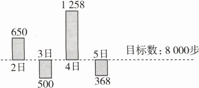 8 [2025 淄博淄川区期末]如图,小李在某运动APP 中,设定了每天的步数目标为 8 000 步,该APP 用目标线上方或下方的柱状图表示每天超过或少于目标数的步数,如 3 日,小李少于目标数的步数为 500 步,则从 2 日到 5 日这四天中小李一共走了____步.