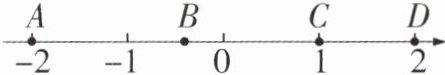 2 [2025合肥五十中月考] 如图,数轴上有A,B,C,D四个点,其中表示互为相反数的点是 ( )
