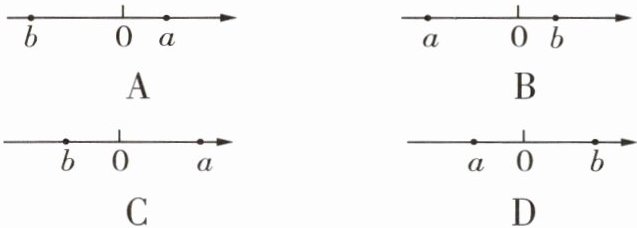 9 [2025上海松江区期末] 已知|a|= a,|b|= -b,|a|>|b|,用数轴上的点来表示a,b,正确的是 ( )