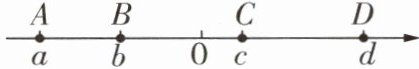 3 [2023徐州中考] 如图,数轴上点A,B,C,D分别对应数a,b,c,d,下列各式的值最小的是 ( )