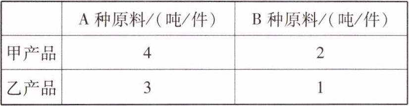| |A种原料/(吨/件)|B种原料/(吨/件)|