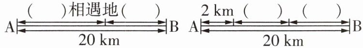 1 A,B两地间的路程为20 km,甲、乙两人同时相对而行,2 h后相遇,相遇后甲就返回A地,乙仍向A地前进,甲回到A地时,乙离A地还有2 km.