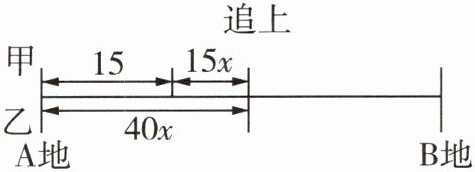 2 [2024青岛城阳区期末]老师在黑板上出了一道题:A,B两地相距46千米,甲骑自行车从A地前往B地,速度为每小时15千米,1小时后,乙骑摩托车也沿相同的路线从A地前往B地,速度为每小时40千米.乙出发多长时间后能追上甲?