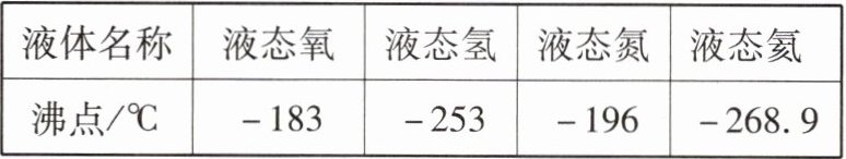 A 因为| - 268.9|>| - 253|>| - 196|>| - 183|,所以 - 268.9< - 253< - 196< - 183,所以沸点最高的液体是液态氧.