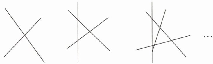 由此可以推断,n条直线相交最多有的交点数为组合数$C_{n}^2$,即$\frac{n(n-1)}{2}$。