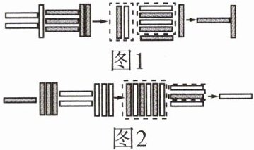 7 新趋势·数学文化 [2025 邢台信都区期末]在《九章算术注》中用不同颜色的算筹(注:小棍形状的记数工具)分别表示正数和负数(白色表示正数,黑色表示负数),图 1 所表示的是$+21+(-32)= -11$的计算过程,则图 2 所表示的是 ( )