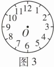 3 几何直观 如图,在钟面上,点O为钟面的圆心,以点O为顶点画出符合下列要求的角(角的两边不经过钟面上的数字):