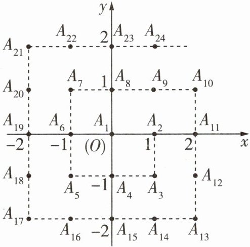 4 新趋势·数学文化 [2023日照中考]数学家高斯推动了数学科学的发展,被数学界誉为“数学王子”,据传,他在计算1 + 2 + 3 + 4 + … + 100时,用到了一种方法,将首尾两个数相加,进而得到$1 + 2 + 3 + 4 + … + 100 = \frac{100×(1 + 100)}{2}.$人们借助这样的方法,得到$1 + 2 + 3 + 4 + … + n = \frac{n(1 + n)}{2}(n$是正整数).有下列问题,如图,在平面直角坐标系中有一系列格点$A_i(x_i,y_i),$其中i = 1,2,3,…,n,且$x_i,$$y_i$是整数.记$a_n = x_n + y_n,$如A_1(0,0),即a_1 = 0,A_2(1,0),即a_2 = 1,A_3(1,-1),即a_3 = 0……以此类推.则下列结论正确的是$( )