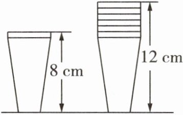 9 [2025白城期末]如图是1个纸杯和6个叠放在一起的纸杯示意图,一个纸杯高为8 cm,6个纸杯高为12 cm.