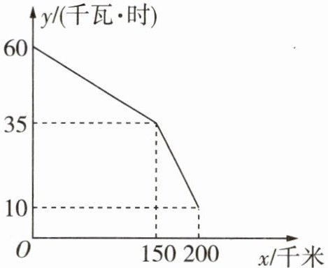 (2)当 150 ≤ x ≤ 200 时,求 y 关于 x 的函数表达式,并计算当汽车已行驶 180 千米时,蓄电池的剩余电量.