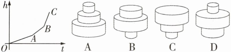 A 由题中图象可知,随着时间t的增加,水面高度h上升速度越来越快(OA段最慢,AB段较快,BC段最快),因为是匀速注水,所以容器应是下面最粗,中间其次,上面最细.