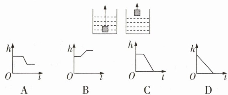 A 根据题意,得在实验过程中有3个阶段:①铁块在水面以下,水面的高度不变;②铁块的一部分露出水面,但未完全露出时,水面高度降低;③铁块在水面以上,完全露出时,水面高度不变.