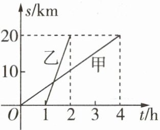 D 根据题中图象可知,甲比乙早出发1 h,但比乙晚到2 h,故选项A,C错误;从甲地到乙地,甲实际用4 h,乙实际用1 h,所以甲的速度是20÷4=5(km/h),故选项B错误,D正确.
