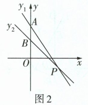 (8)如图2,函数$y_{1}的图象与y轴交于点A$,函数$y_{2}的图象与y轴交于点B$,两函数图象交于点$P(3,-1)$。