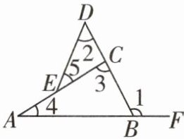 1 如图,点B,C分别在∠EAF的边AE,AF上,点D在线段AC上。下列是△ABD的外角的是( )