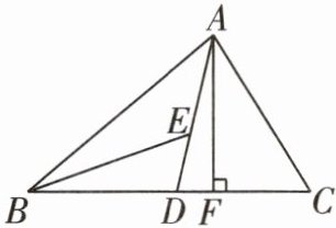 6 [2025上海青浦区段考]如图,在△ABC中,AD,AF分别为△ABC的中线和高,BE为△ABD的角平分线,交AD于点E。若∠BED= 60°,∠BAD= 40°,求∠BAF的大小。