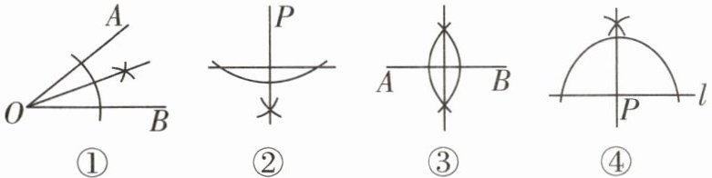 3 [2024 云浮期末]尺规作图要求:Ⅰ. 过直线外一点作这条直线的垂线;Ⅱ. 作线段的垂直平分线;Ⅲ. 过直线上一点作这条直线的垂线;Ⅳ. 作角的平分线。如图是按上述要求排乱顺序的尺规作图,正确的顺序是( )