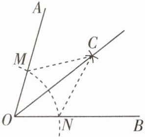 $\frac {1}{2}MN$的长为半径画弧,两弧在∠AOB内部交于点C;③画射线OC,OC即为所求。以上作图过程及结论证明中没有体现的数学道理是( )