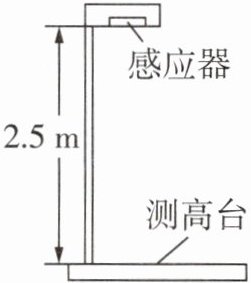 5 新情境[2023安徽中考]图示为一种身高测量仪,其顶部的感应器竖直向下发射声波信号,经下方物体反射后返回,被感应器接收。某同学站上测高台,感应器记录信号从发射到接收所经历的时间为 $5 × 10^{-3}$ s。已知感应器距测高台的高度为2.5 m,空气中的声速取340 m/s,则该同学的身高为 (