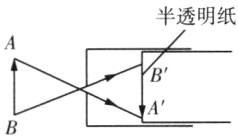 4 2000多年以前,我国学者墨子就和他的学生做了世界上第一个小孔成像实验,大致过程如下:在一间黑暗的小屋朝阳的墙上开了一个小孔,人对着小孔站在屋外,屋里的墙上就出现了一个倒立的人像,如图甲所示。请在图乙中作出物体AB经小孔在半透明纸上所成像的位置及成像光路图。