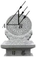 3 日晷是我国古代发明的计时工具,如图所示,它是根据____的原理制成的,如果阴影由短变长,则表示时间为____(填“上午”或“下午”)。请根据指针的影子AB,画出此时太阳光的传播方向(太阳光视为平行光)。