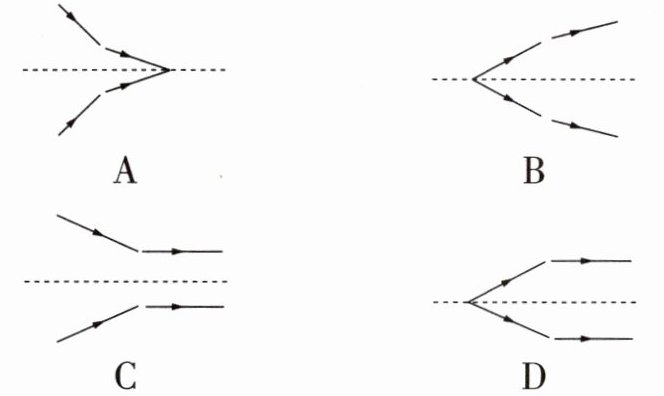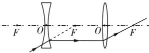 [解析] 由题知,两透镜焦距相同,且其中一个焦点F(两透镜间的焦点)刚好重合,延长线过另一侧焦点的光线经凹透镜折射后将平行于主光轴,平行于主光轴的光线经凸透镜折射后将过焦点。