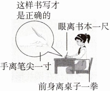 1 新情境[2025南阳宛城区月考]不正确坐姿可能会造成近视眼或颈椎病,正确坐姿距离要求“一尺一寸一拳头”,如图。一尺是指眼睛到书本的距离约为(